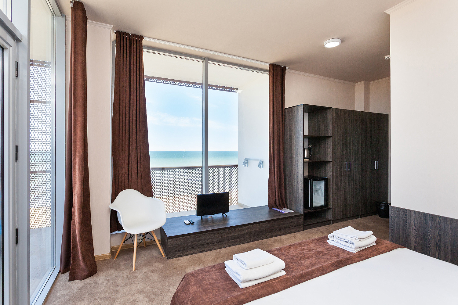 Пляж находится в шаговой доступности, прекрасный вид на море открывается не только из кафе, но из окон панорамного бассейна, где в изнуряющий зной можно весело провести время!