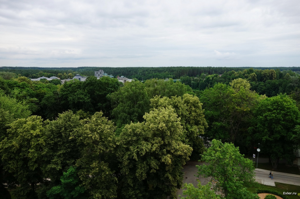 А вот это - точно такой же старый дом отдыха, который до сих пор принадлежит каким-то двум профсоюзам. У них нет денег на его перестройку, продать строение они так и не продали (все никак не могут договориться), в результате здание уже много лет стоит пустое и разрушается. Я, к сожалению, не успел сфотографировать его вблизи (мы проезжали мимо), но поверьте - это жуткое зрелище. Прям какая-то Зона из "Сталкера". Тем интереснее посмотреть на эти два отеля (SPA Vilnius SANA и Lietuva), которые сделаны из точно таких же домов отдыха.