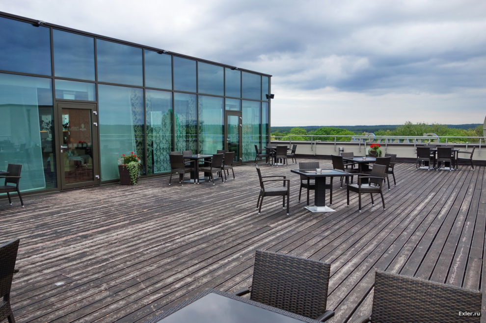 На верхнем этаже комплекса сделан уютный ресторан, у которого также есть открытая терраса с красивым видом на весь город.
