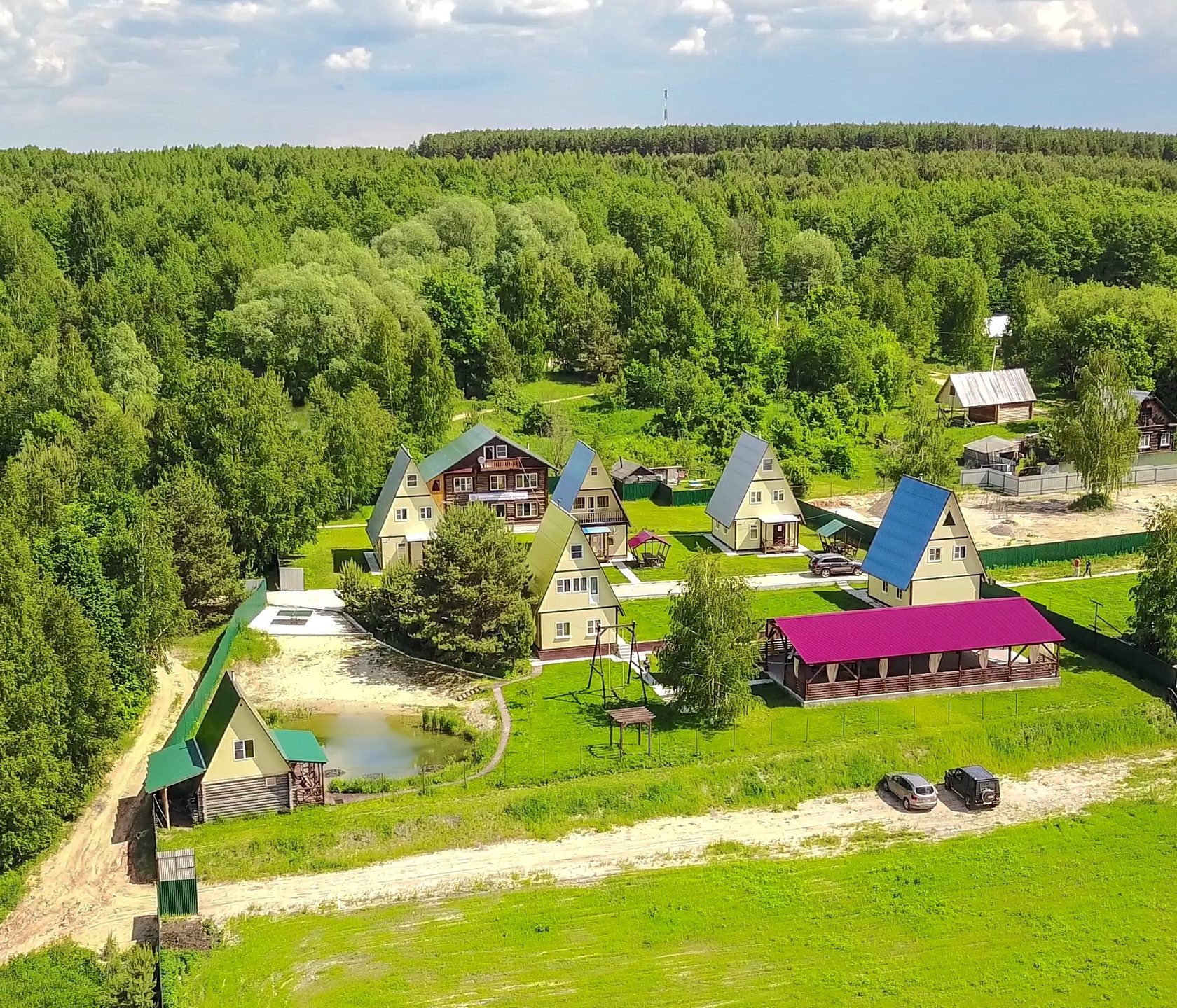 Наш гостиничный комплекс расположен в сосновом бору д. Синяя Осока, неподалеку от Рубского озера.