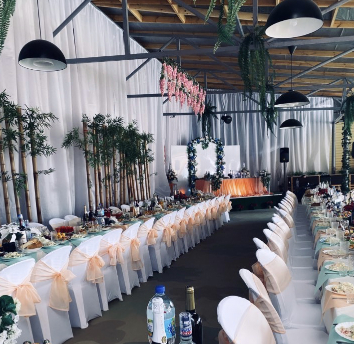 На территории нашего загородного клуба вы сможете выбрать подходящую именно вам площадку для проведения выездной церемонии. Свадебный шатер вмещает в себя до 250 человек.