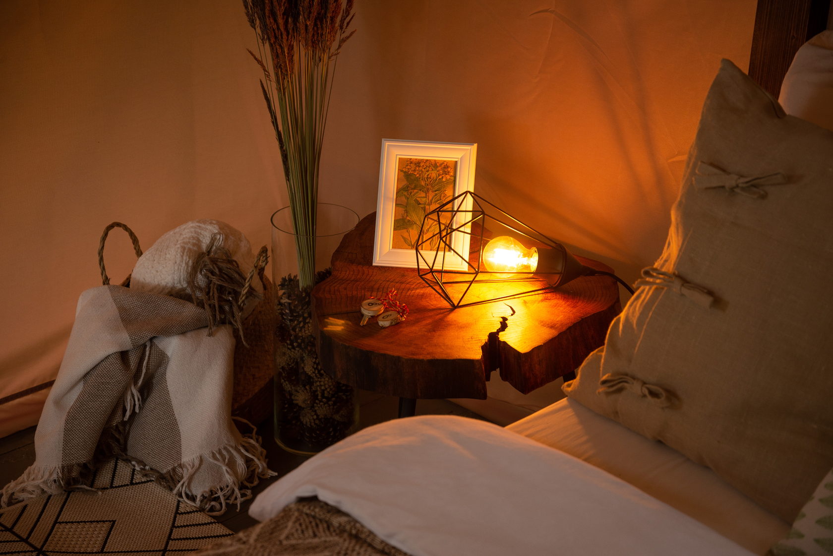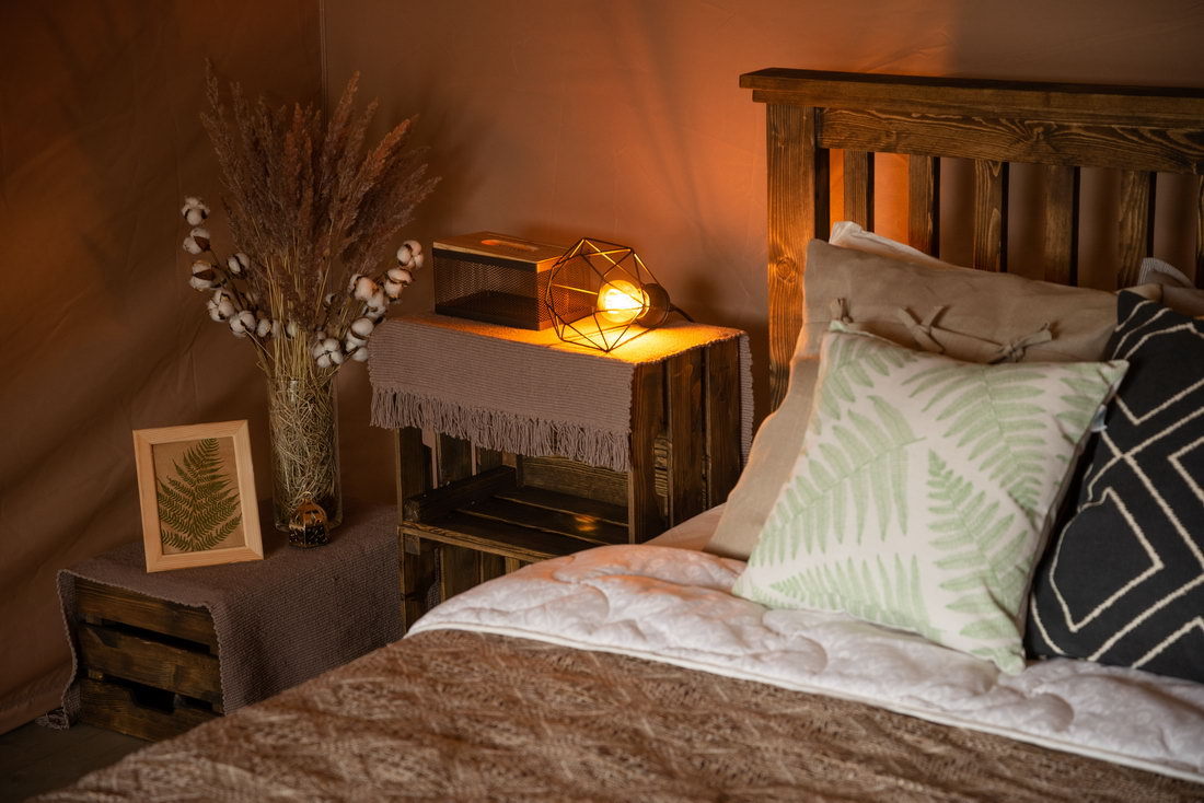 Вы сможете жить в комфортабельном шатре площадью 24 кв.м. Спать на полноценной кровати.