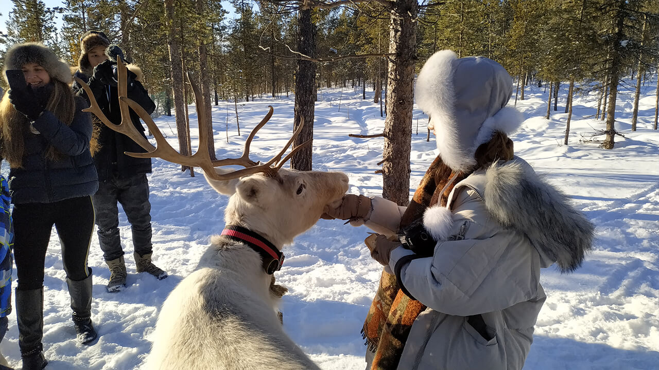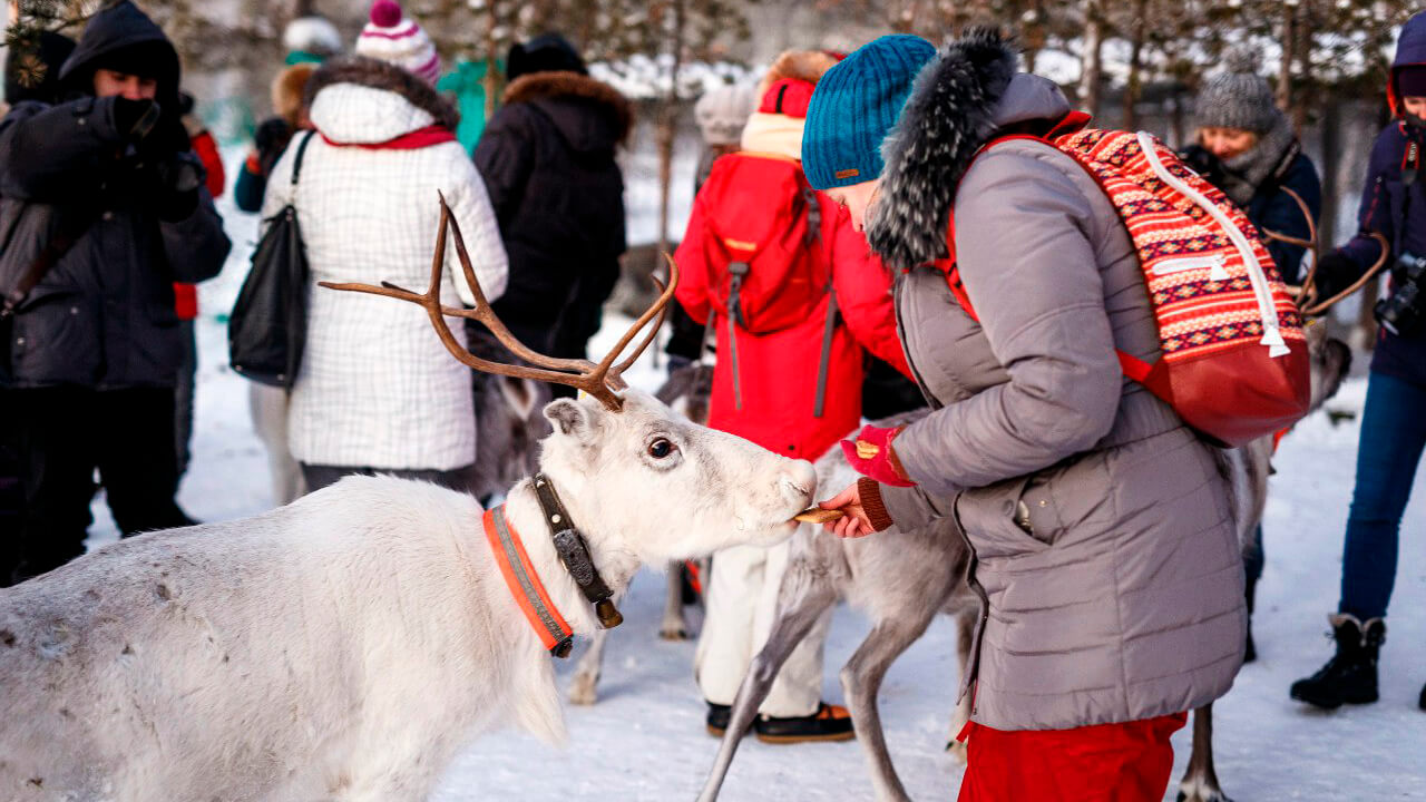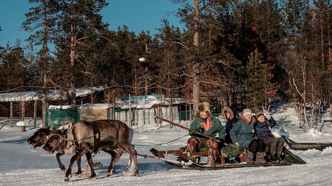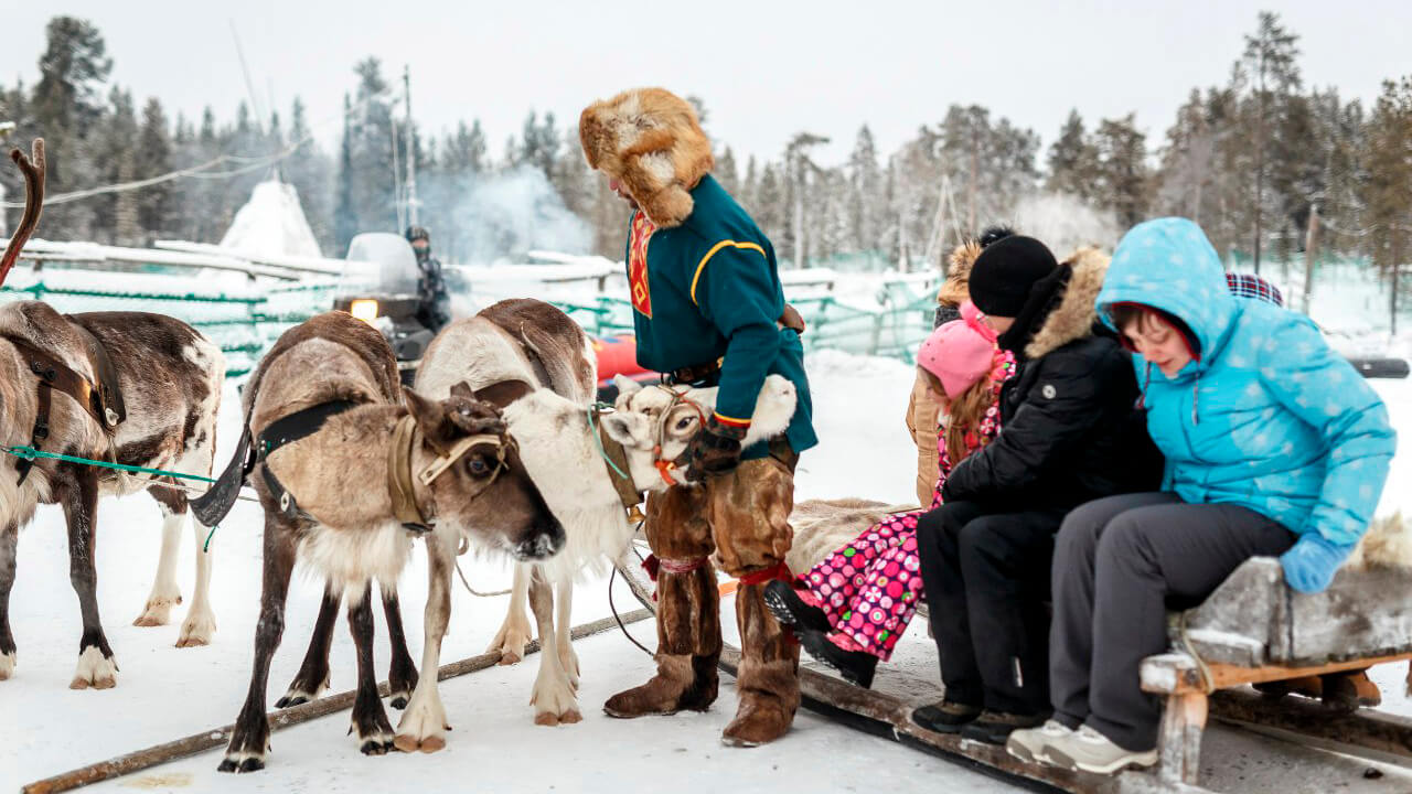 ⬤ Познакомитесь с обычаями саамов и погулять по оленьей ферме