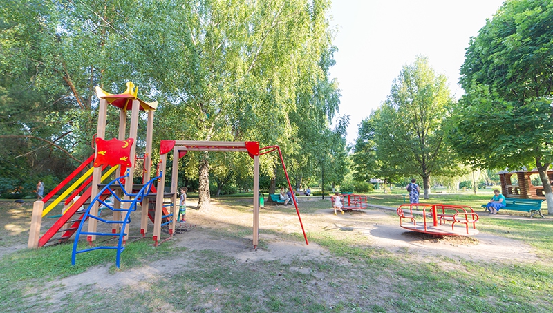 В санатории работает детская комната. Воспитатели проводят развивающие игры и конкурсы. На территории расположена игровая площадка.