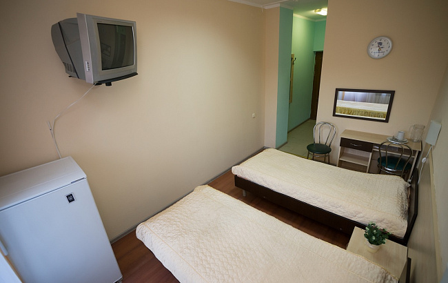 В номере: односпальные кровати, мини-холодильник, телевизор, санузел с душем, фен, балкон.