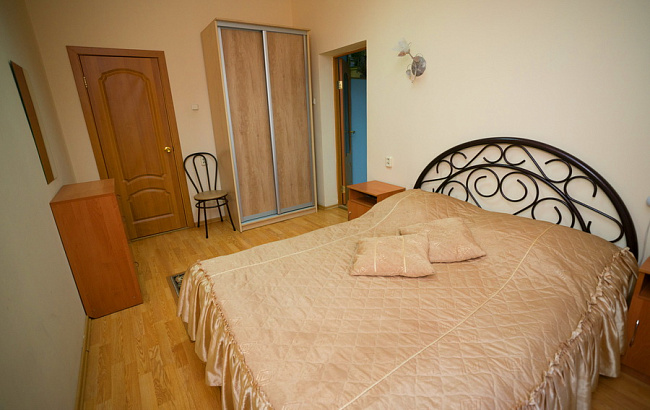 В номере: двуспальная кровать, диван, мини-кухня, СВЧ-печь, мини-холодильник, телевизор, кондиционер, электрочайник, утюг и гладильная доска, санузел с душем, балкон.