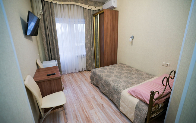 Номер со всеми удобствами для проживания одого человека.