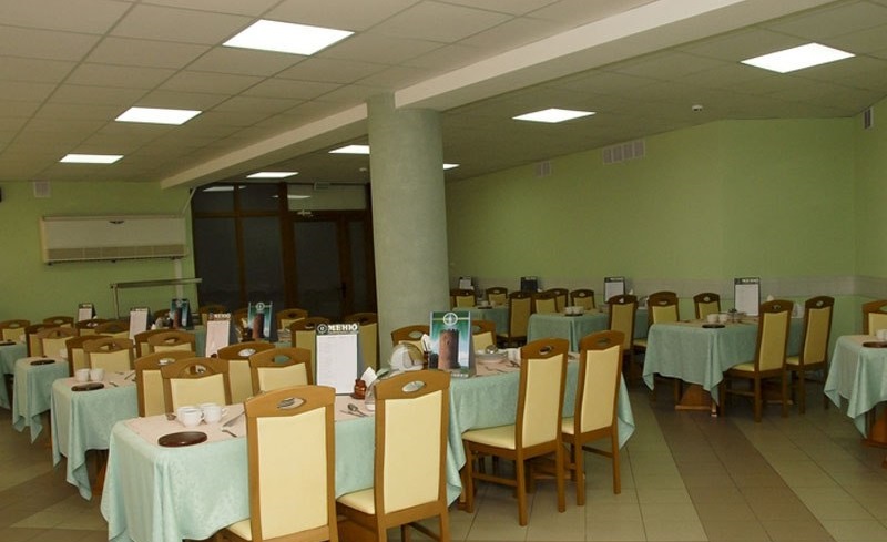 В стоимость проживания включено 4-разовое диетическое питание по 14-дневному заказному меню. Столовая находится на первом этаже спального корпуса №1. Постоянно действующие диеты: Б (общий стол), П (заболевания органов пищеварения), Н (хронический гломерулонефрит, цирроз печени). Питание отдыхающих осуществляется в одну смену. На территории оборудована площадка для шашлыков.