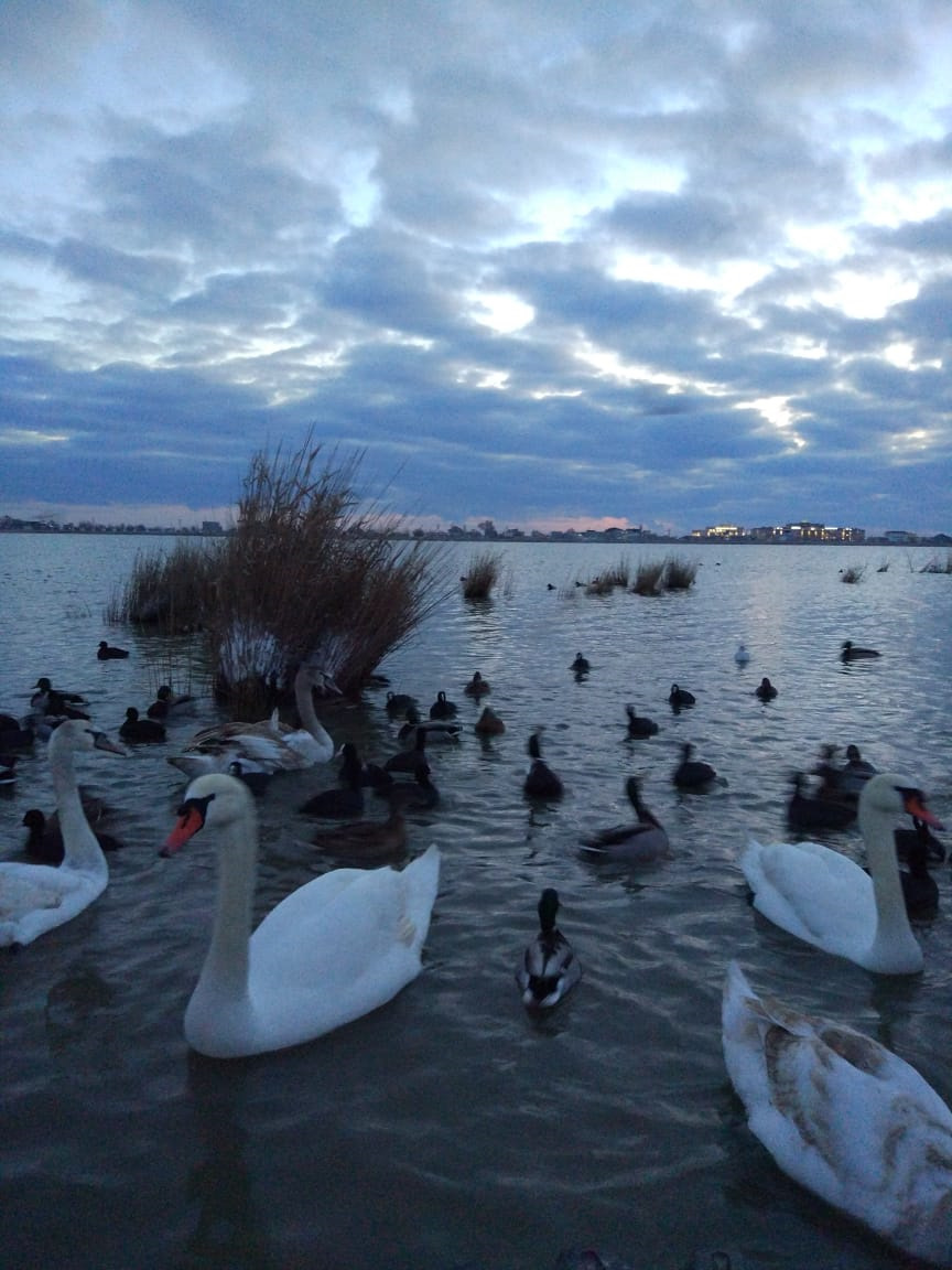 Как видно по фотографиям, гуляли мы откровенно не долго, замерзли и двинулись в путь домой. На выезде из города даже немного успели покормить лебедей и уток — вот оно настоящее счастье для детворы!