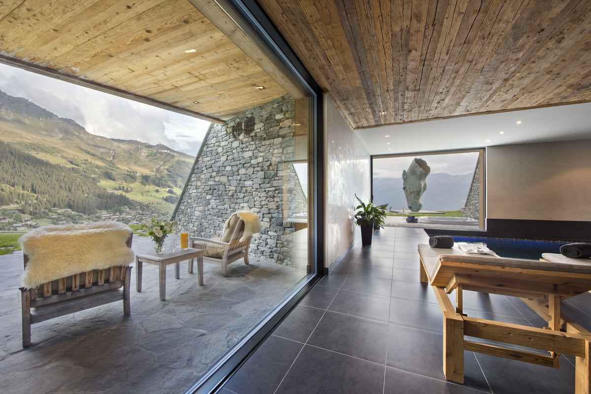 Большая терраса словно создана для уютных семейных обедов с фондю. Включите музыку и наслаждайтесь горными видами. Можете представить, как тут хорошо в солнечный день большой компанией (кстати, дополнительный бонус зимой – бесплатное шампанское!). Вернувшись после катания на лыжах, тут будет чем заняться – джакузи, хаммам, бассейн, домашний кинотеатр, библиотека, винный погреб. У вас будет возможность насладиться редким коллекционным вином, прежде чем попробовать ужин от шефа.