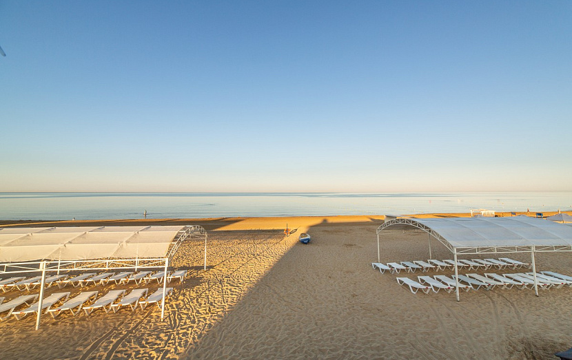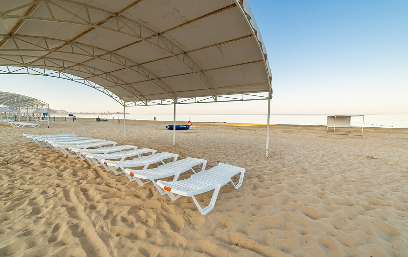 Собственный песчаный пляж находится в 200 метрах от отеля. На пляже есть лежаки, зонтики, душевые, кабинки для переодевания. На берегу работают медицинский и спасательный посты.
