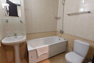 Понравилось месторасположение, пешком минут 5-7 от ж/д вокзала. Но одновременно с этим вы становитесь заложником прохода через вокзал, и бесконечного досмотра. Рядом есть столовая. Можно с животными за доп.плату 150р/день за более качественную уборку. Есть возможность раннего заселениям за 100₽/час, при условии что номер подготовлен. Жили на 5 этаже, в полулюксе. Уборка номера и смена полотенец была каждый день за все 6 дней проживания, была даже смена постельного белья не 3ий день проживания. Наличие лифта и бассейна, хоть и очень маленького. Кулер на этаже.