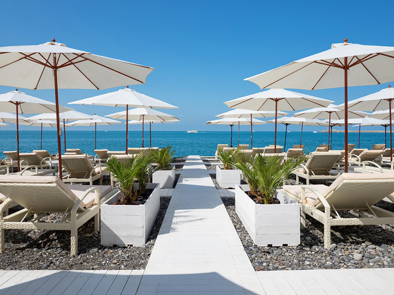 На черноморском побережье располагается роскошный пятизвездочный отель со стильными номерами, множеством услуг и развлечений, собственным галечным пляжем, великолепным зеленым парком и головокружительными видами из окон. Но согласно мнению туристов, одно из главных преимуществ отеля – его расположение в самом центре города и в 2 минутах ходьбы от моря.