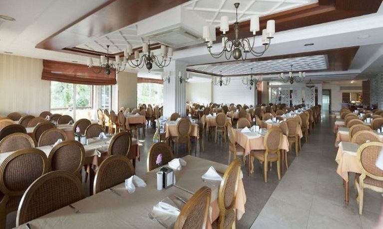 Завтрак подают в баре. Гости могут насладиться ужином в ресторане a la carte. В диско-баре можно приятно провести время. В 650 метрах от отеля находятся рестораны Q Beach Restaurant & Lounge и Merkez Saray. На территории отеля расположены теннисный корт, ночной клуб и лежаки, а также гости могут бесплатно воспользоваться спа-терапией и занятиями фитнесом. Гостей этого семейного отеля приглашают отдохнуть с помощью спа-центра, аювердической терапии и оздоровительного центра. Также доступно катание на водных лыжах, баскетбол и катание на горных велосипедах для активного отдыха.