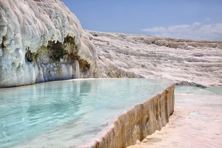 Поездка в Памуккале, знаменитый термальными источниками, бассейном Клеопатры, белоснежными травертиновыми террасами. Стоимость тура составляет минимум 40 долларов с человека.