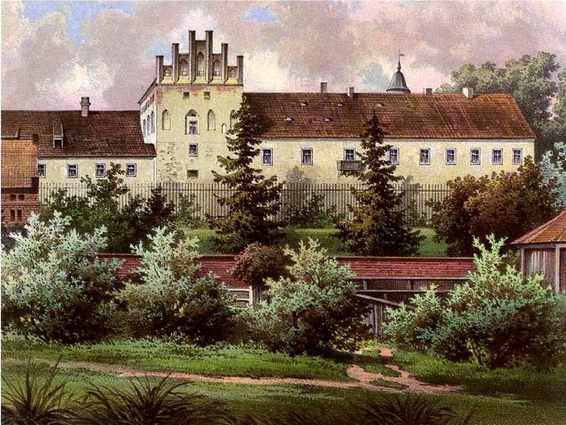 В 1854 году было разобрано здание Конвента, вместо него возведен западный флигель, два этажа которого отвели под замковую кирху, а на третьем расположился большой зал для торжеств, после 1697 года названный залом Московитов в честь принимавшегося здесь Великого посольства Петра I.