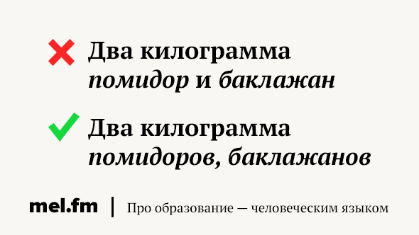 Правильно: два килограмма помидоров и баклажанов