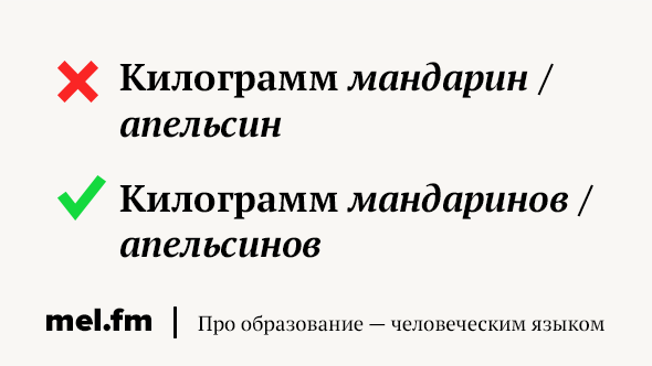 Правильно: килограмм мандаринов / апельсинов