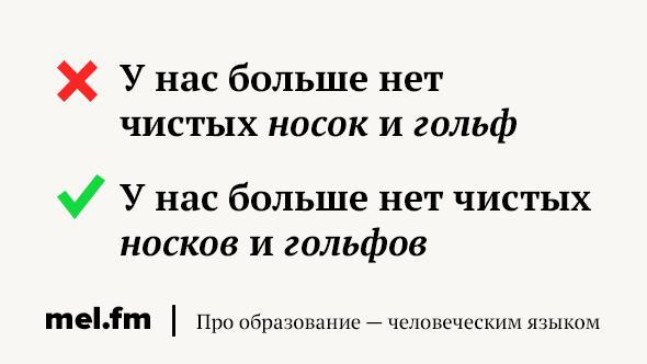 Правильно: у нас больше нет чистых носков и гольфов
