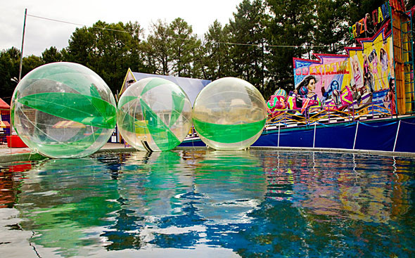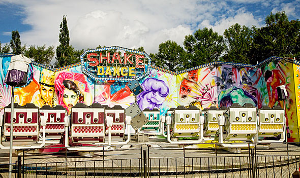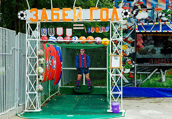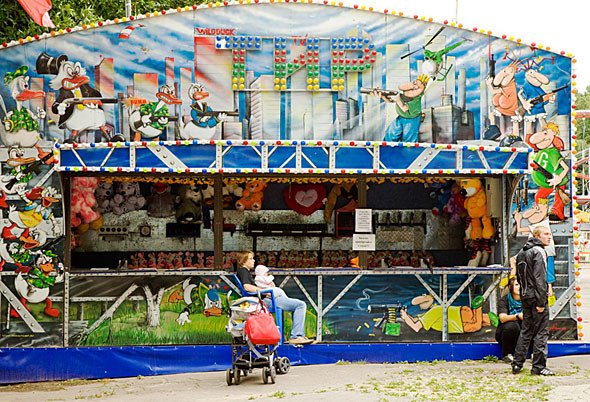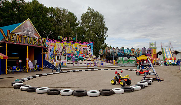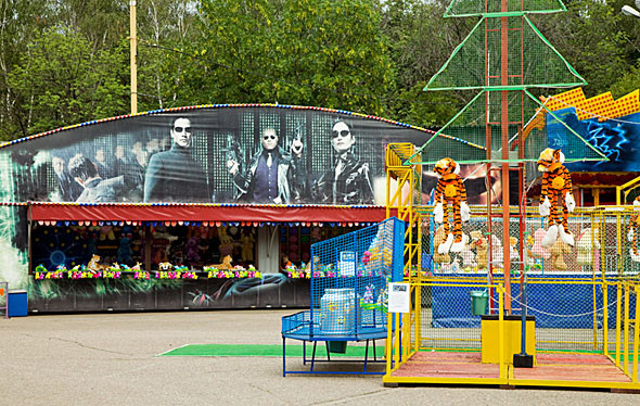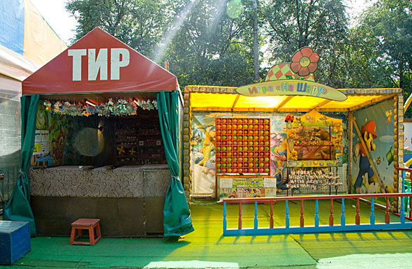 Здесь собраны аттракционы, связанный с военной тематикой: карусели, катание на надувных лодках, колесо обозрения, тир.
