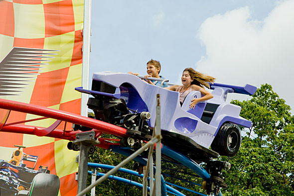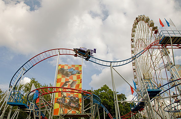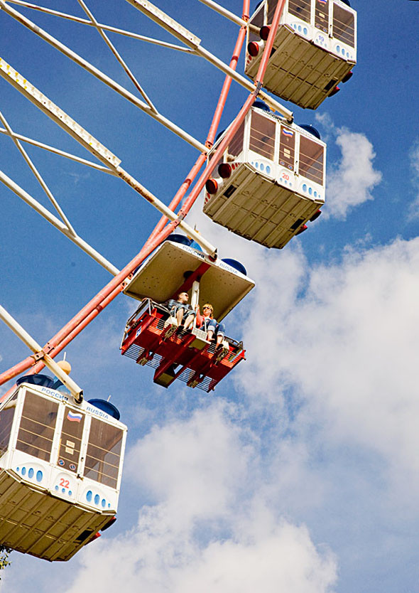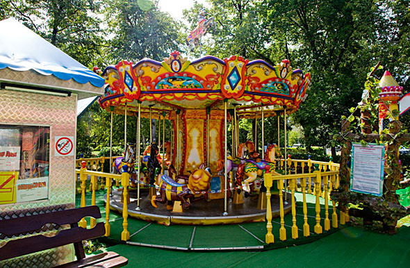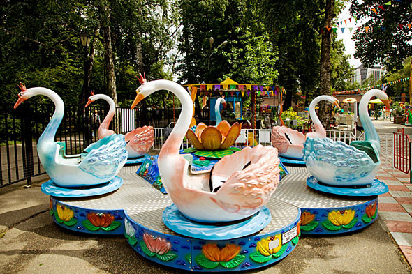 30-метровое колесо обозрения, карусели и горки делают парк одним из самых привлекательных мест в городе. Рядом располагаются 3 кафе, где можно перекусить и перевести дух.