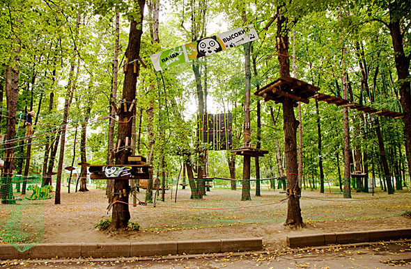 Это веревочный парк, располагающийся на большой, ухоженной территории. Здесь предлагают маршруты разной сложности. Свою ловкость и силу новичок испытывает, преодолевая препятствия невысокого уровня, а более опытные гости выбирают самые тяжелые трассы.