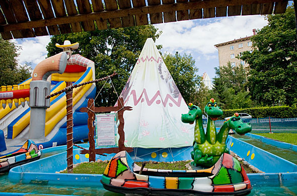 Недалеко от входа в парк, рядом с Пионерским прудом, располагается самое любимое место детей.