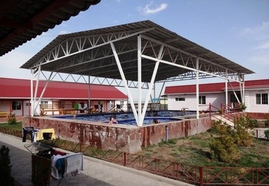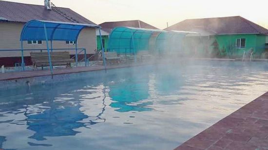 Инфраструктура: 3 бассейна с термальной водой (зимний крытый и 2 открытых – детский (глубина – 1,1-1,5 м) и взрослый (глубина – 1,6-1,8м), караоке, беседки с мангалами, казанами и коктальницами, сауна, кафе, детская площадка, автостоянка.