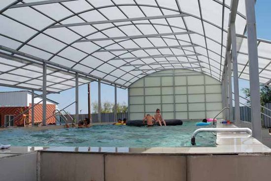 Инфраструктура: 2 открытых бассейна (детский и взрослый) и закрытый мини-бассейн 2х2 м.