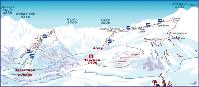 Схема станций Эльбрус Азау