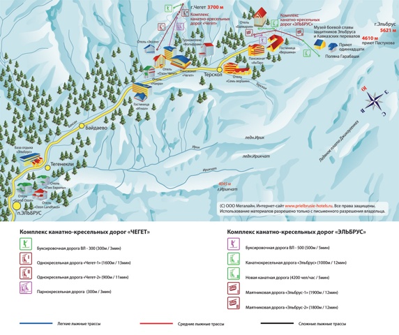 Канатные дороги, подъемники и трассы в Эльбрусе