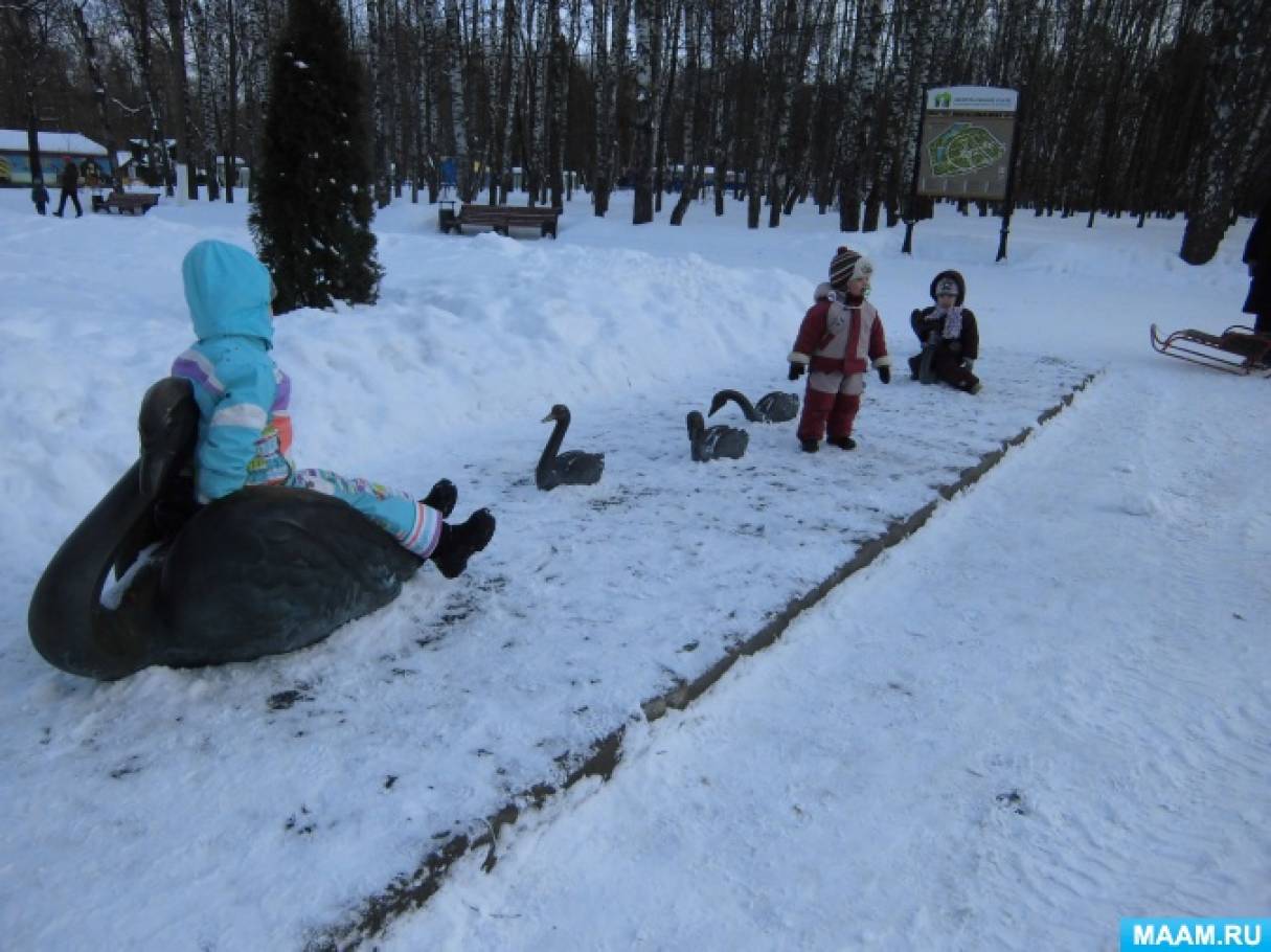 Экскурсия в зимний парк Цели экскурсии : развитие наблюдательности у дошкольников, чувства сопереживания к судьбе птиц зимой, интереса и любви к родной природе;.