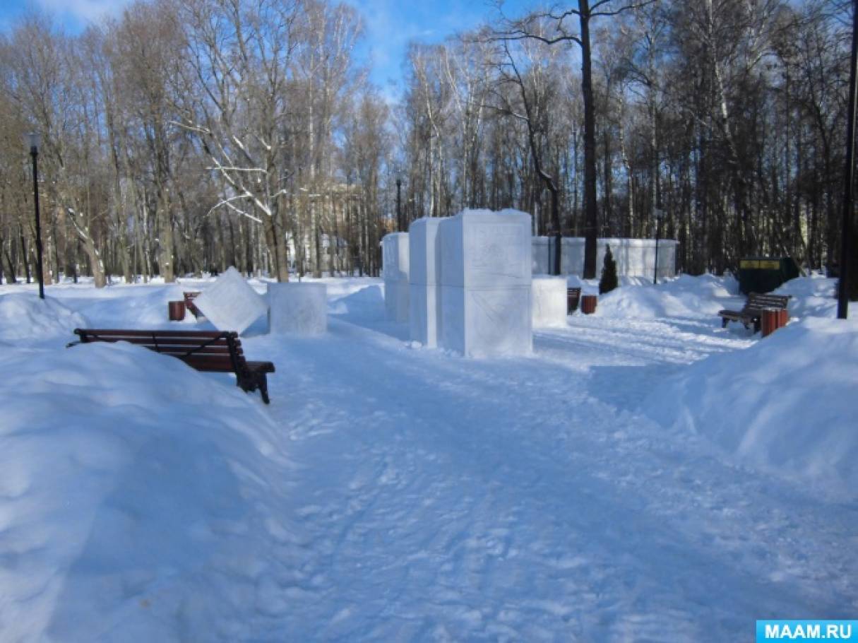 Построены снежные горки и залит каток для катания.