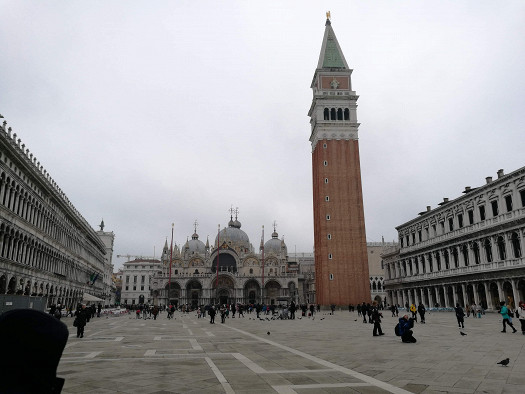 Площадь Сан-Марко — самый центр Венеции, где неизменно оказывается любой гуляющий по просторам города на воде. Архитектурная доминанта — колокольня, опять же в честь Святого Марка, — видно её практически отовсюду (если только вы не уплыли на какой-нибудь очень отдалённый канал).