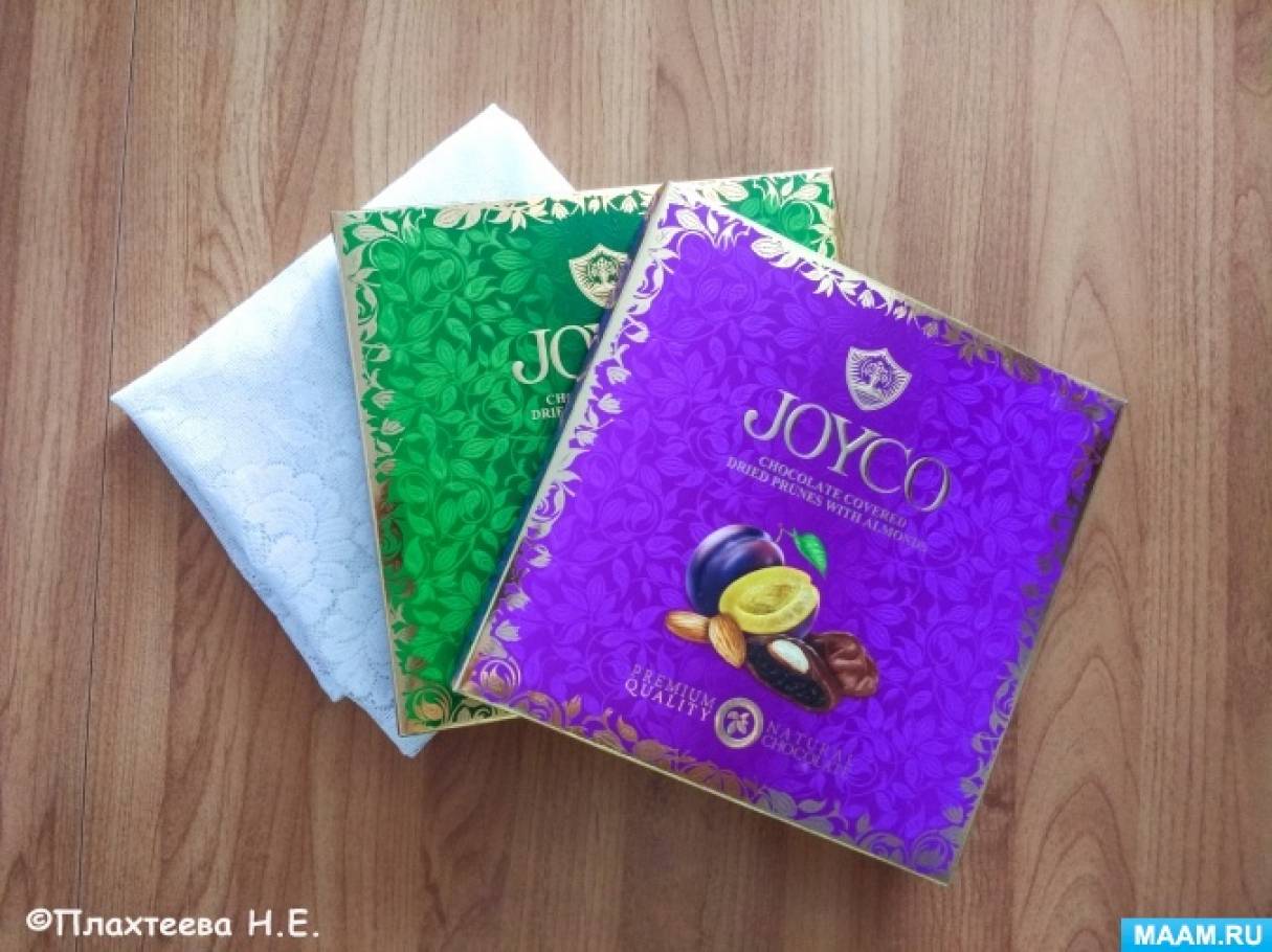 Возьмите нижнюю часть коробки от конфет. Нарисуйте и аккуратно вырежьте отверстия-окошки