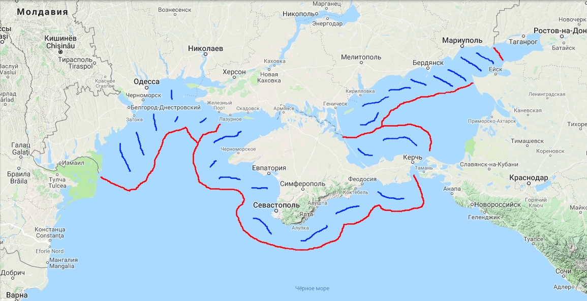 Граница черного и азовского моря на карте