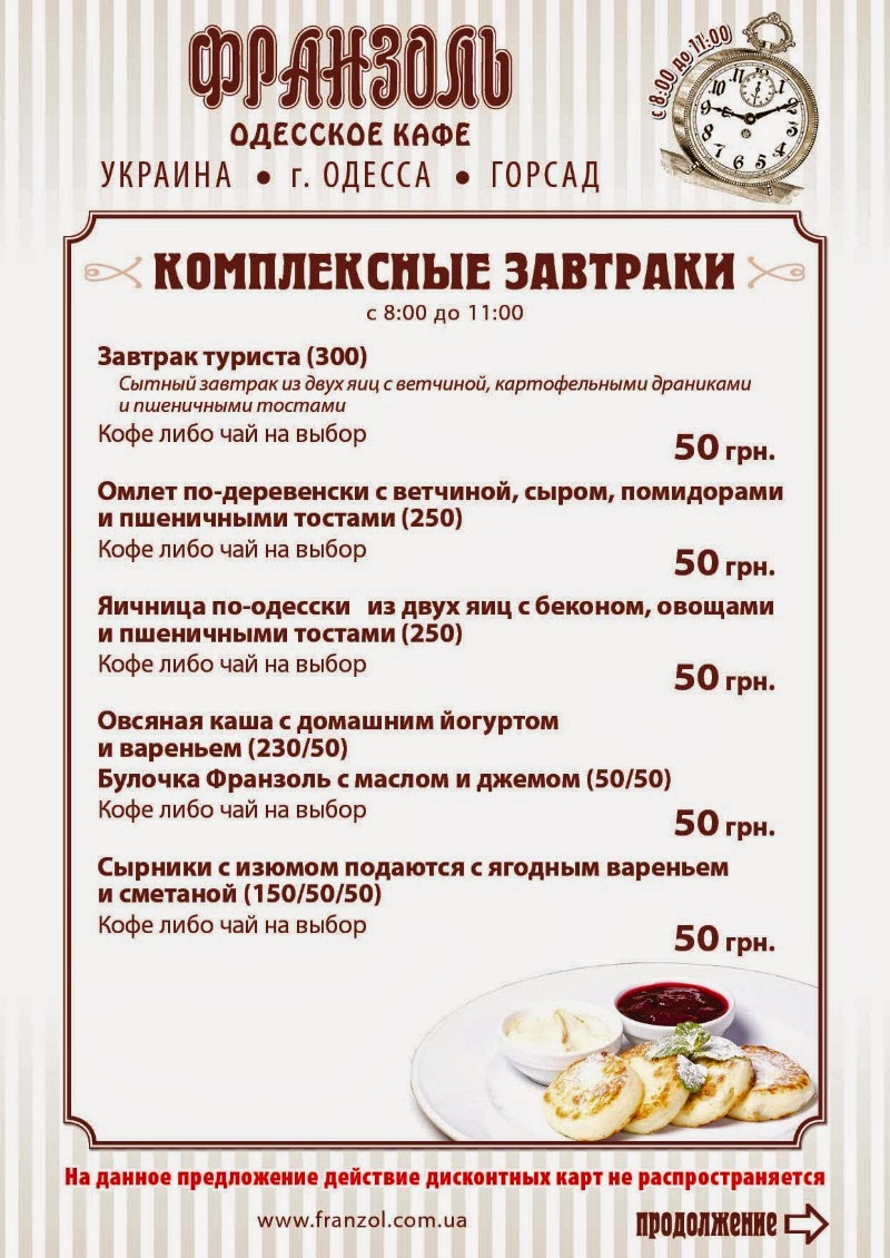 Завтраки в кафе меню
