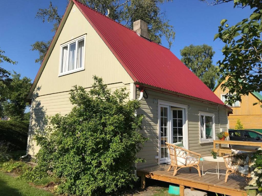 На первом этаже – кухня, спальня, ванная комната и гостиная с выходом на веранду, которая оборудована садовой мебелью и мангалом. На втором этаже – две просторные спальни.