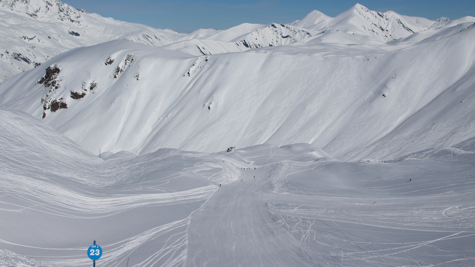Плюсы: – Просторная, солнечная зона катания, с трассами для катающихся на разном уровне; – Протяженные склоны, большой сектор для начинающих рядом с курортом; – Есть возможности для ski in/ski out; – Достаточно оживленный курорт с неплохим выбором ресторанов и вариантов размещения; – Не слишком длинный трансфер; Минусы: – В высокий сезон и каникулы многие трассы бывают перегружены; – Трассы быстро подтаивают, особенно весной; – Мало трасс в лесу; – Сам курорт слишком растянут; – До трасс на леднике приходится добираться слишком долго.