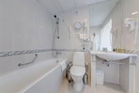 В номере: Односпальная кровать, телефон, сейф, санузел с ванной, фен.
