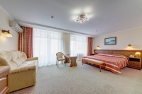 Проверить наличие Люкс 2-комнатныйВ номере: двуспальная кровать/2 односпальные кровати, раскладной диван, угловой диван, косметический столик с зеркалом, банкетка, шкаф, сервант, рабочий стол, журнальный стол, стулья, зеркало, 2 кондиционера, холодильник, чайник, комплект посуды, телевизор, сейф, телефон, Wi-Fi, балкон с сушилкой и мебелью. В ванной комнате: ванна, фен, телефон, полотенца, туалетные принадлежности, халаты, тапочки.
