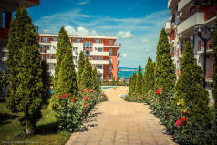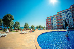 The wonderful sandy beach, the nearby Aqua park, supermarket, taxi and bus service make the complex ideal place for summer vacation on the Bulgarian Black sea coast. In “Privilege Fort Beach” you will find everything you need for a comfortable and relaxing holiday with your family! You and your children can enjoy the pools, the Jacuzzi and the artificial river floating through the complex. All the pools have life-guards. The sun lounges around the pools are free of charge.