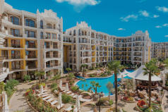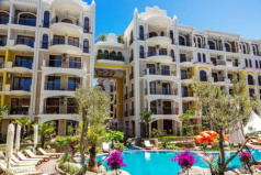 Приятный небольшой комплекс. Всё новое, стильное. Есть SPA, в котором сауна, турецкая баня и крытый бассейн (всё требует записи и небольшой доплаты), массаж, салон красоты. Два больших бассейна: в первом больше детей, он помельче, второй поглубже. Шезлонги деревянные с матрасами. Очень хорошие. После таких шезлонгов на простые пластмассовые в аквапарке даже не хотелось ложиться. Мелкие бассейны для самых маленьких. Бассейн на ночь никто не закрывает. Вечернее купание до 23:00. Бассейн с подсветкой. В плотную с бассейном спа ванная с довольно горячей водой. Ночное (вечернее) купание очень освежает после жаркого дня. Питание. Бар у бассейна, можно как позавтракать, так и заказать основные блюда. Рядом несколько ресторанов. Один — слева, другой — справа. Один из них Pacific (справа) : цены такие, что в нем можно завтракать, обедать и ужинать. Это будет дешевле, чем покупать продукты. Понимают русский язык. Быстрый сервис. Отличительная черта комплекса: фонтан с подсветкой и музыкой. Больше нигде на Солнечном берегу такого не видел. Персонал. Очень приветливые и деловитые девушки во входной группе (ресепции). Очень милые в баре у бассейна. Очень неприветливые на уборке. С уборкой ленятся, нужно подсказывать, напоминать, требовать. Персонал по уборке ведёт себя, как будто они здесь хозяева. При встрече не здороваются. Беседуют между собой громко, не обращая внимания на окружающих (но это отличительная черта не комплекса, а болгарского сервиса). В общем "дикие".