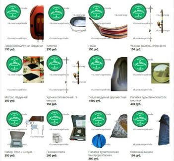 2. Прокат палатки 4-местной – 1000 руб. за неделю, залог 4000 руб.