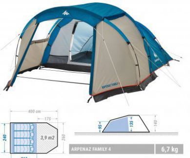 | Кемпинговая четырехместная палатка ARPENAZ 4.2 | 400 | 8500 |