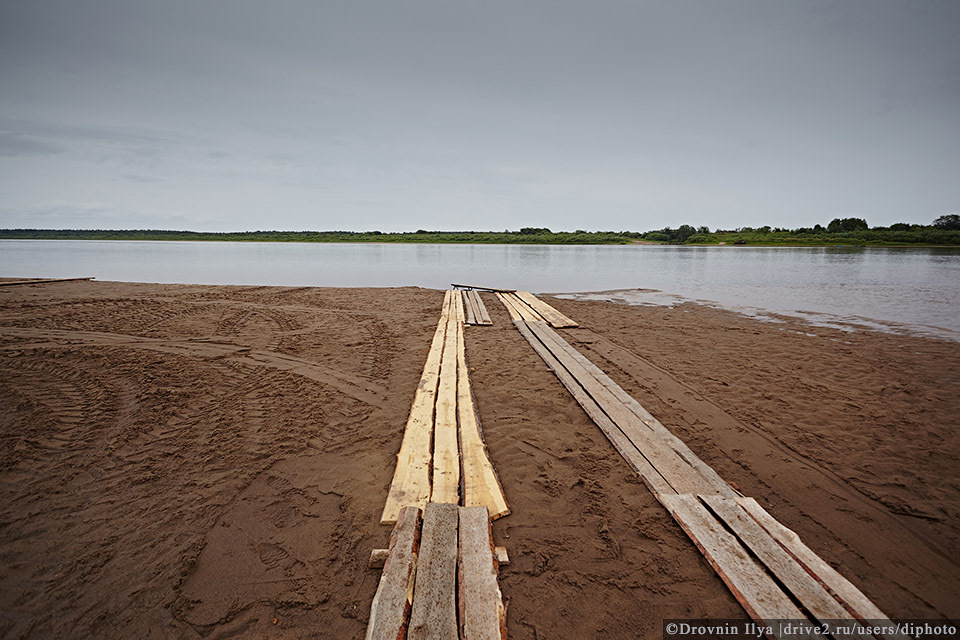 04.Дорога до столицы Поморья просто отличная, и камер мало, так что редко кто соблюдает скоростной режим, и правильно делает. 90 км/ч для легковых автомобилей, это давно устаревшая мера. Когда были Жигули да Волги, это имело смысл, но сейчас на современных машинах 90км/ч это смешно. Давно пора разрешить ездить 110км/ч. Иногда дороги в Архангельской есть и такие, судя по всему, сюда подходит паром, и машины заезжают по доскам, чтобы не провалиться.