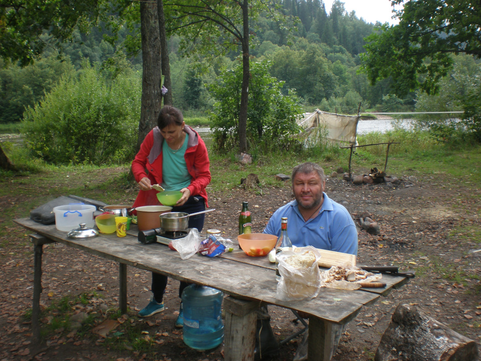 После водных процедур в нереально холодной воде, мы разбили лагерь на берегу реки Лемеза. Приготовили гороховый суп с копченостями и начали уже физически отдыхать.