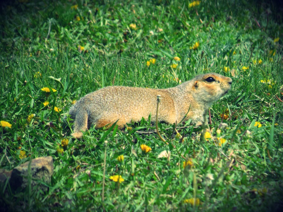 Асфальт кончается вновь и вот виднеется гора Ауштау. Тем временем, через дорогу перебегает он.