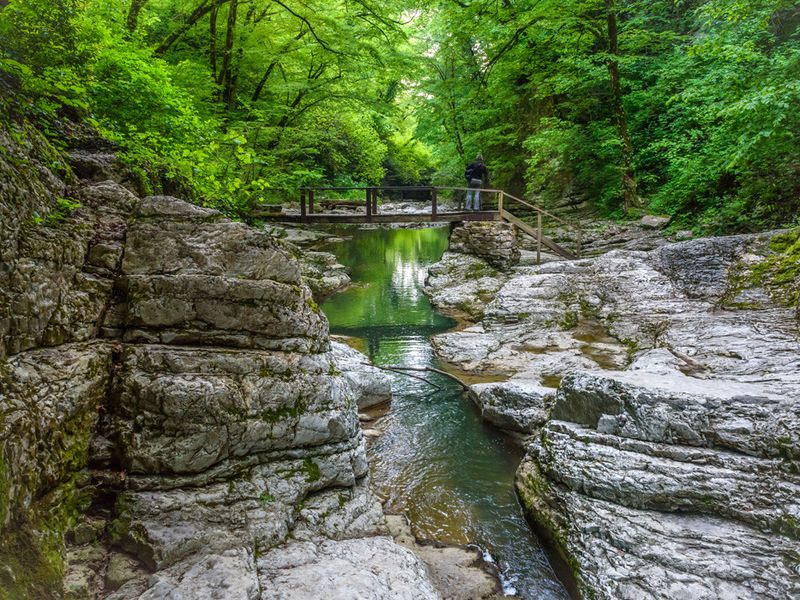 Координаты Агурского ущелья: 43.558580, 39.825712Пешеходный маршрут по природной достопримечательности не представляет сложности, подходит для начального уровня физической подготовки и посещения с детьми в любой сезон года.