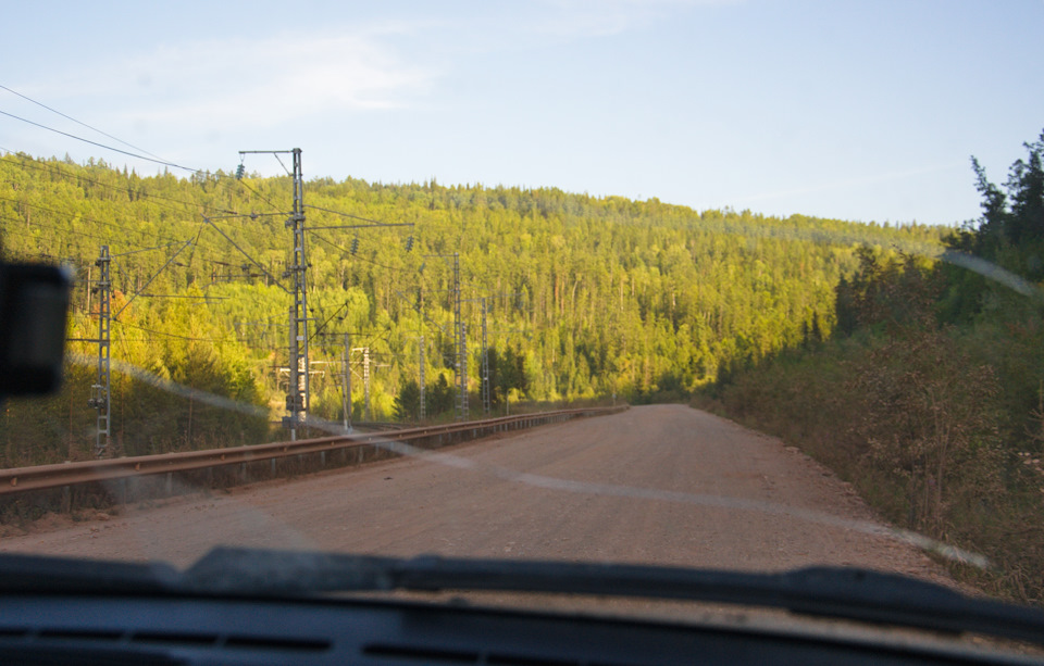 Сегодня будем пробовать доехать да Северобайкальска одним ходовым отрезком. До Братска идет грейдер, с периодическими вставками асфальта (кажется). Тут я в первый раз села за руль, муж выпихнул, чтобы опыта набиралась))
